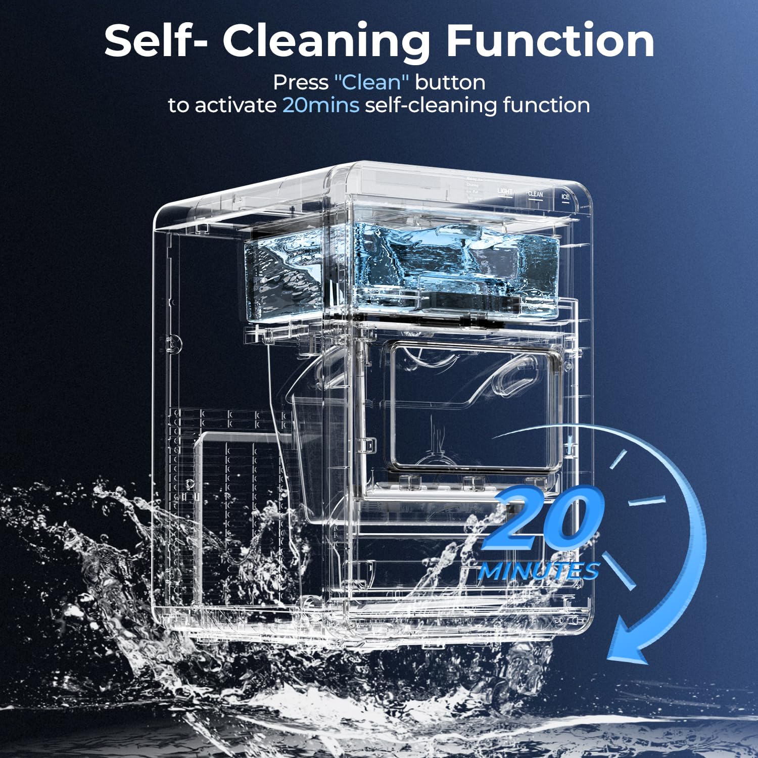 - Self-Cleaning Care:One-touch maintenance cycle keeps ice tasting fresh. No more funky ice odors! Simply activate weekly (or after 2-week inactivity) for crystal-clear ice you can trust.