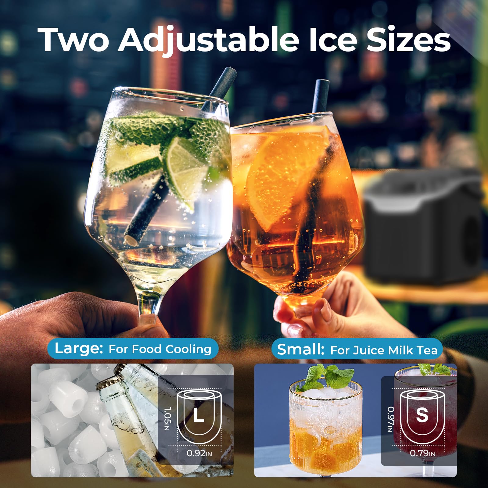 - Turbo Ice Machine:Chill drinks in just 6 minutes – 26lbs of ice a day capacity crushes summer heat anxiety. Keep the drinks flowing at pool parties, BBQs, or sudden guest arrivals.