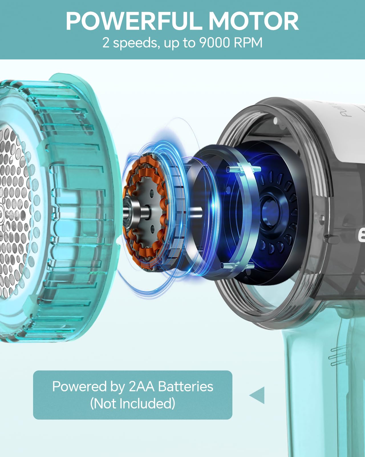 - Powerful motor runs at up to 9000rpm, quickly remove all the lint, fuzz, bobbles on your garment or furniture