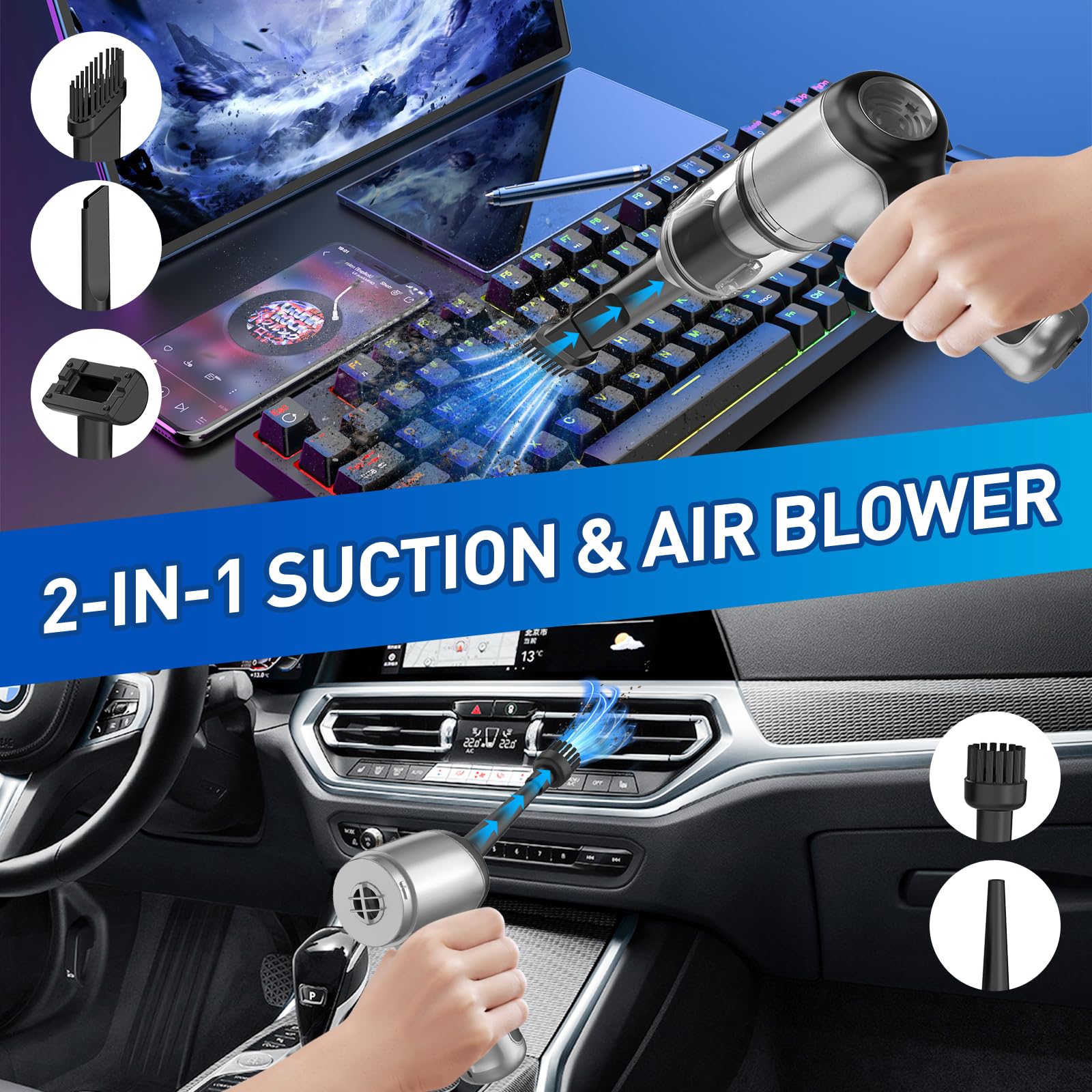 Handheld Car Vacuum Cleaner Cordless with 16000PA Powerful Suction, 4-in-1 Portable Mini Vacuum Cleaner & Air Duster with Multi-Accessories, Hand Held Vacuum Cordless Rechargeable for Car Home
