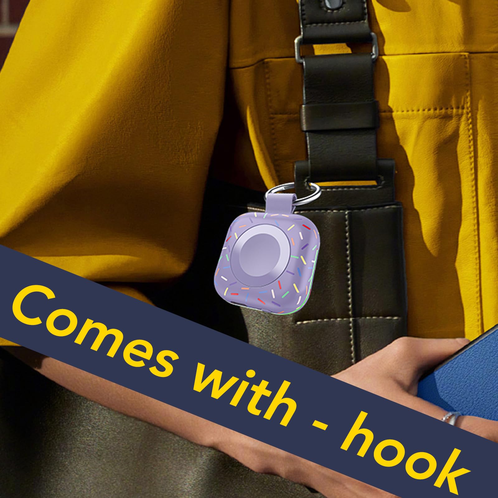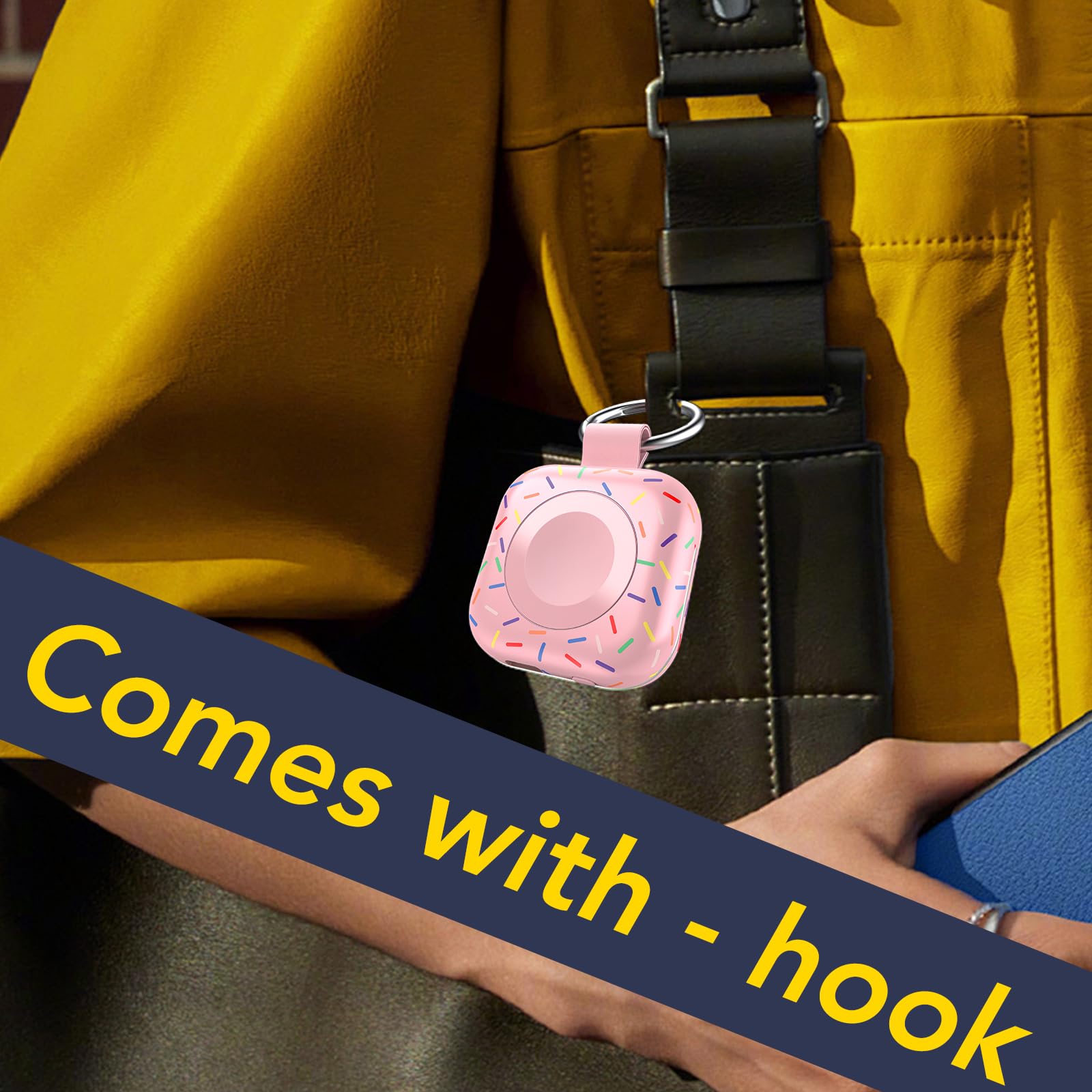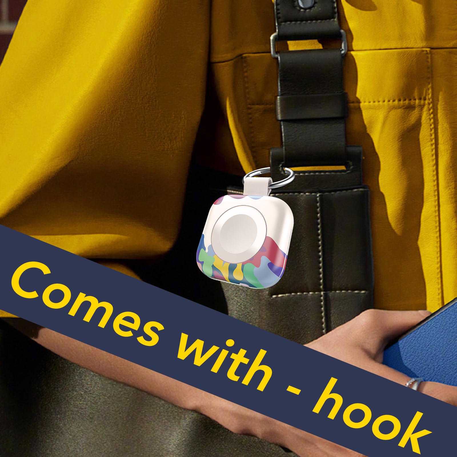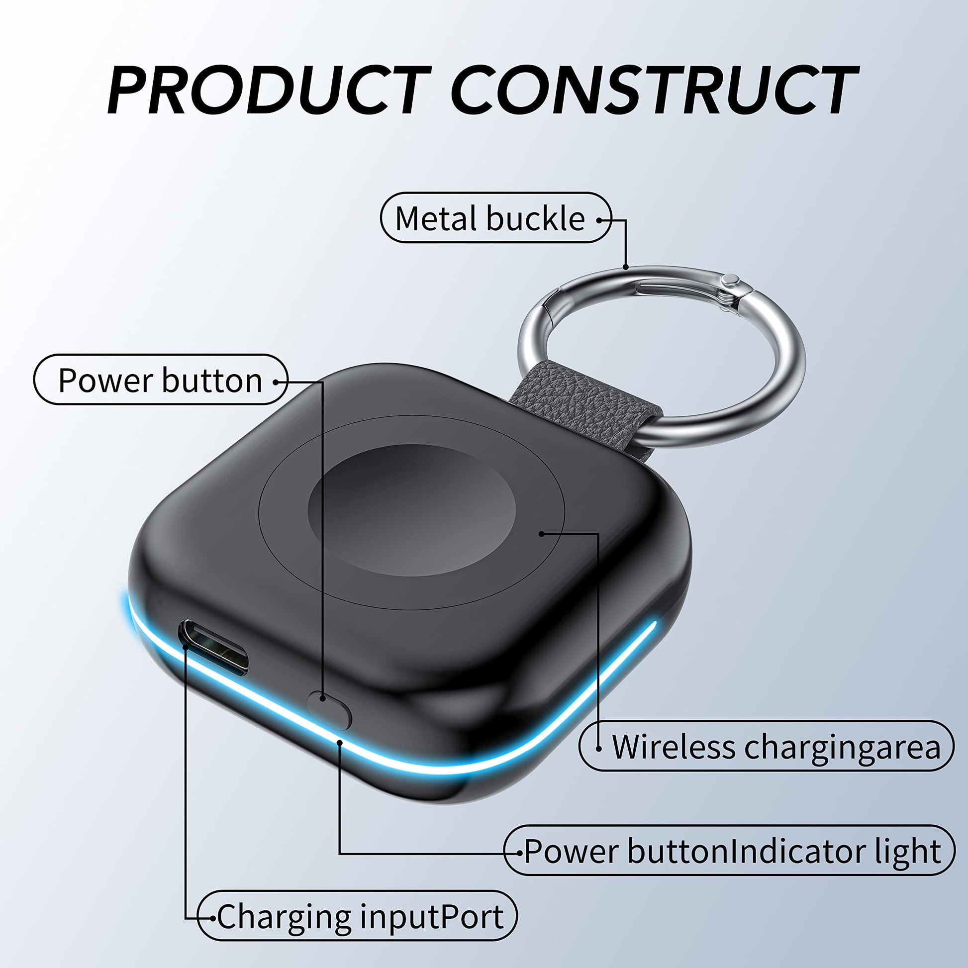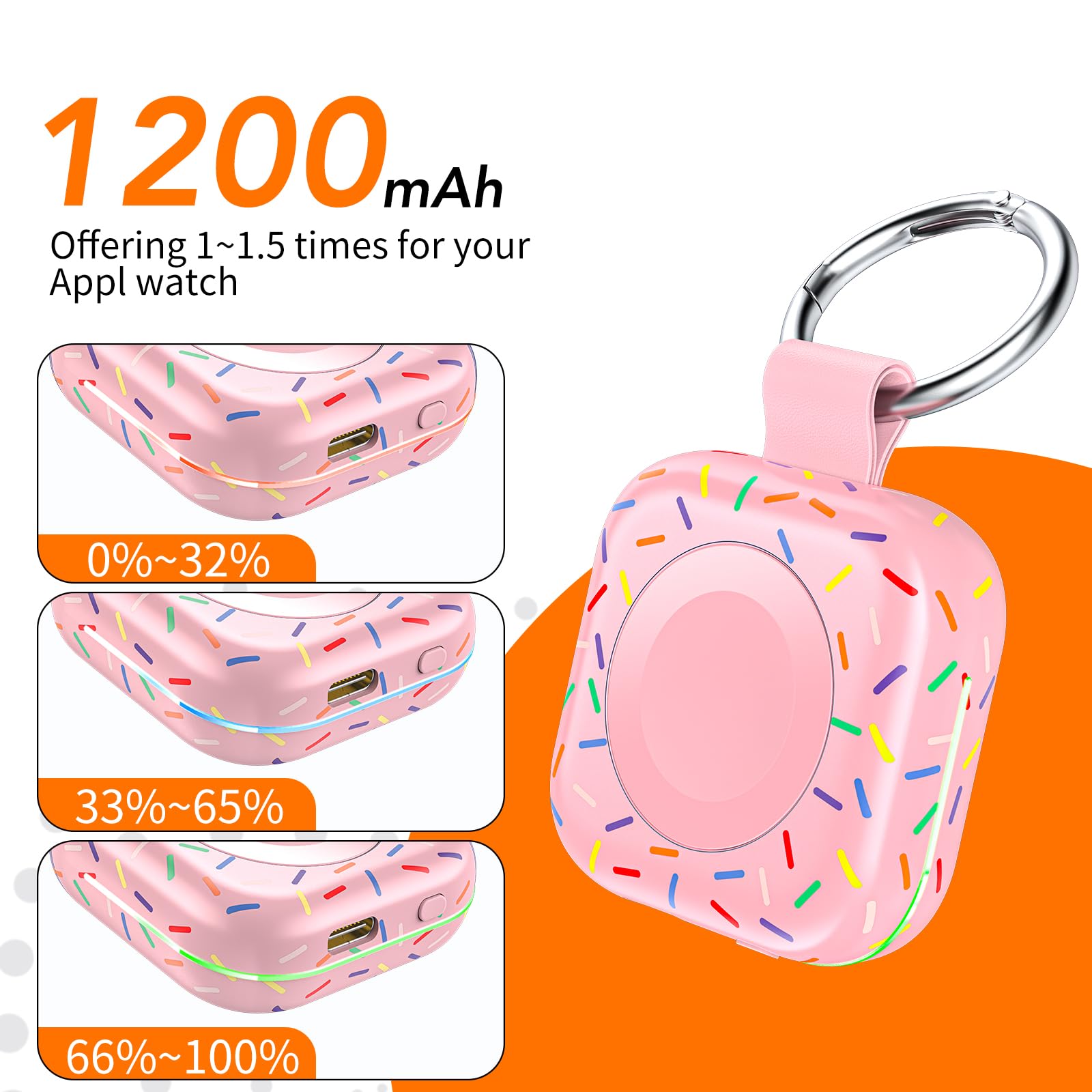 - Mini Compact: The size of the cute keychain portable charger for apple watch is about the size of your watch.The comfortable frosted feel makes people love it.New indicator light design(0-30% Red Light,30%-60% Blue Light,60%-100% Green Light), fashion, keychain design,Convenient for all kinds of travel
