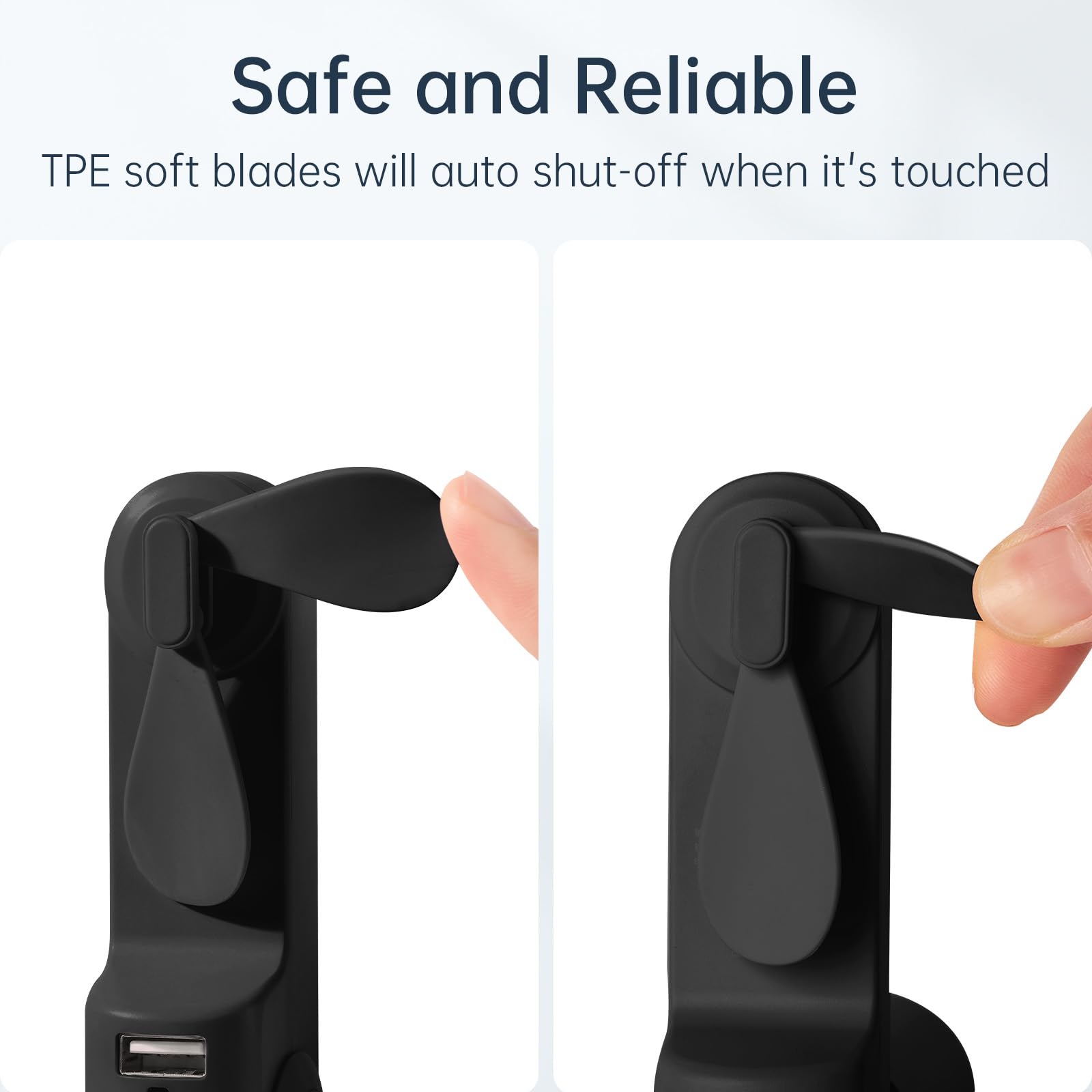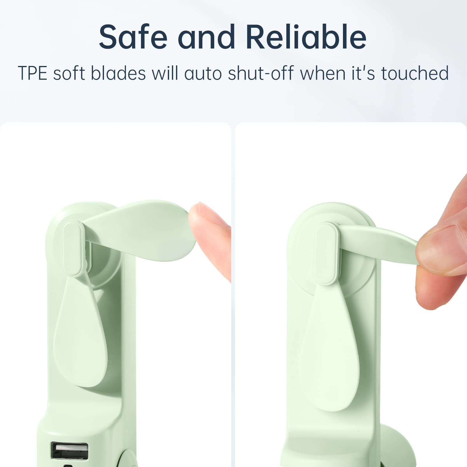 - Foldable Design and Mini Size: Foldable design is easy to carry and store. In addition, this rechargeable fan comes in an oval shape (1.3*1.3*4.7 inches, weight: 4.4 ounces), which hides the fan blades, compact size, easy to fit in your pocket and purse.