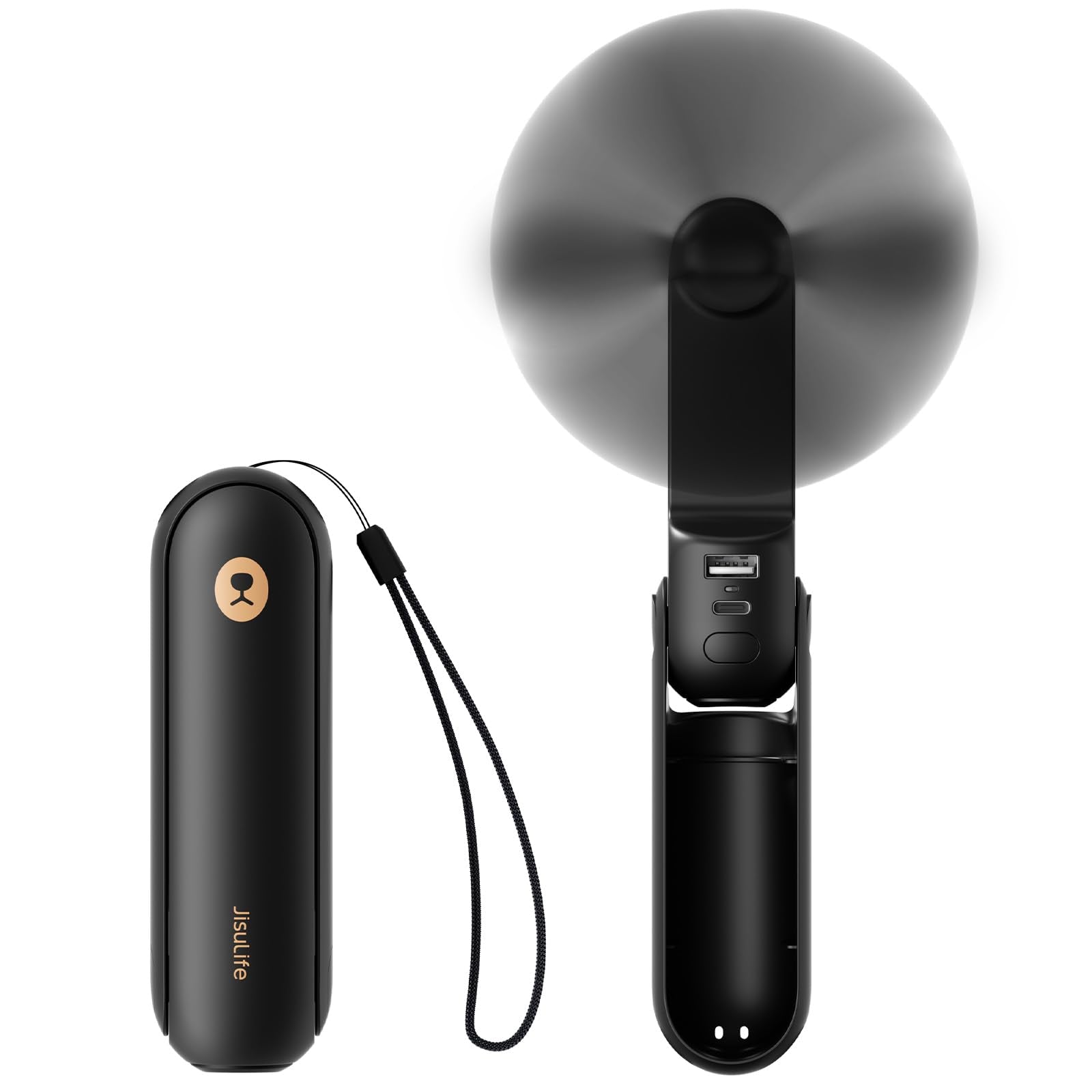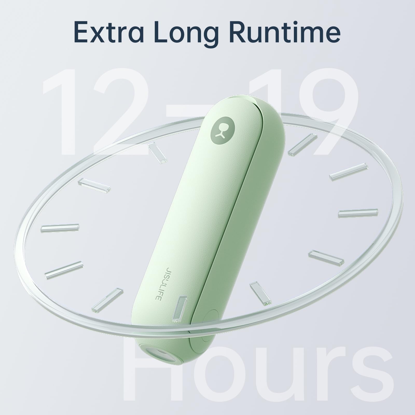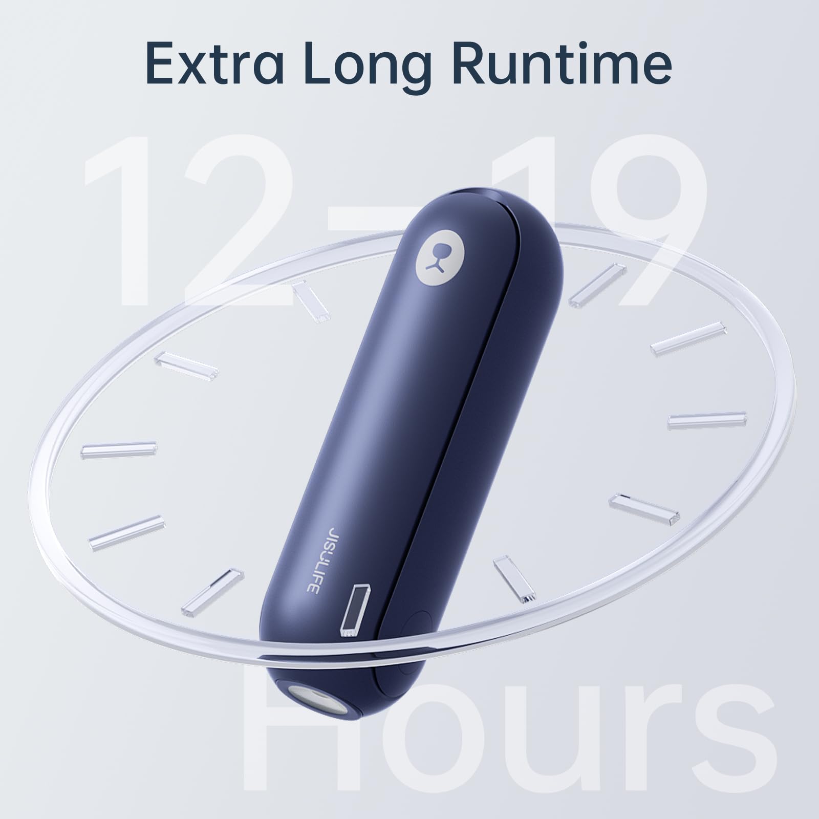 - Super Long Life and Strong Airflow: JISULIFE portable hand fan adopts advanced technology, it lasts for 12 hours at 2-speed, 19 hours at 1-speed after about 3 hours of full charge. This mini fan is enough for personal use to keep you cool.
