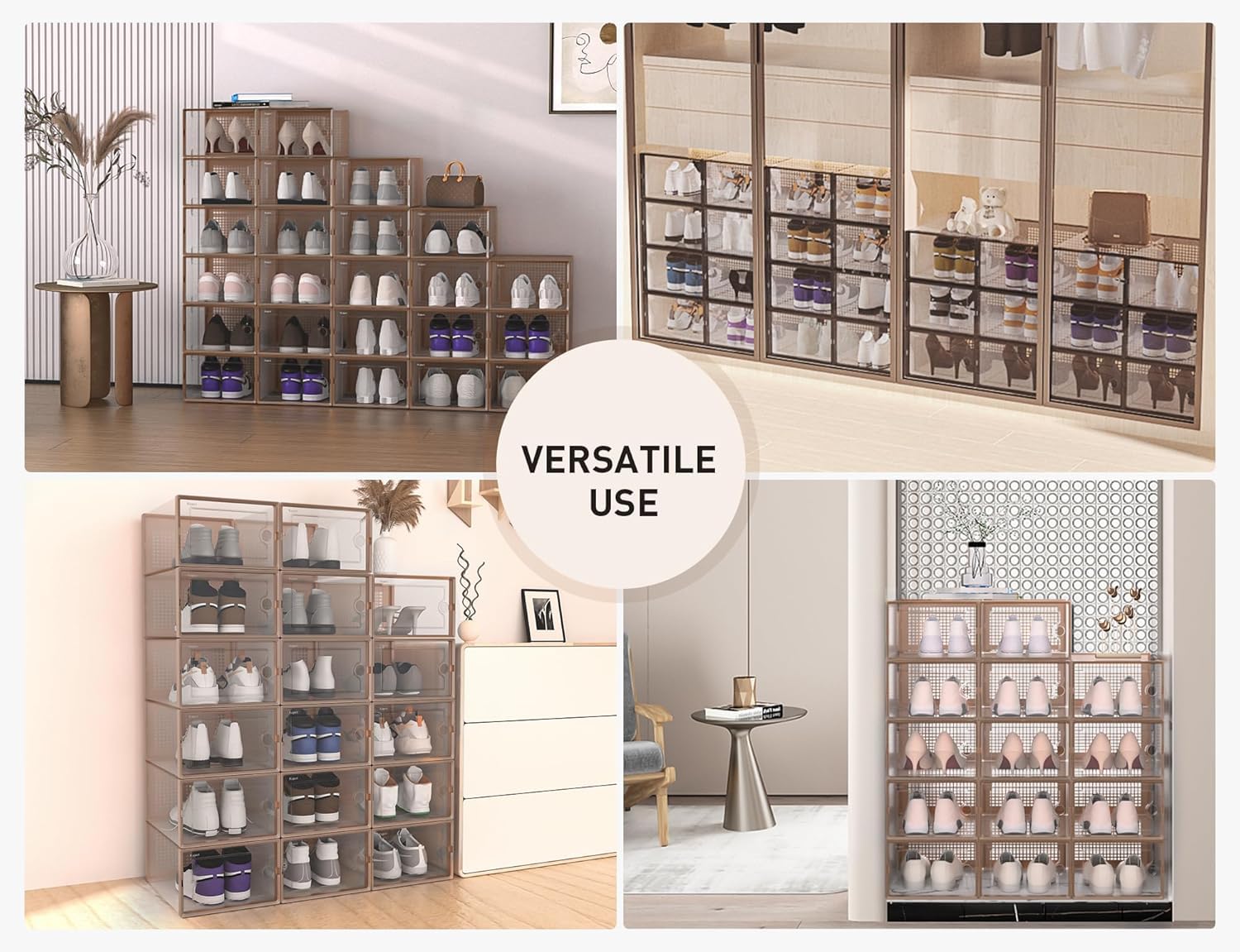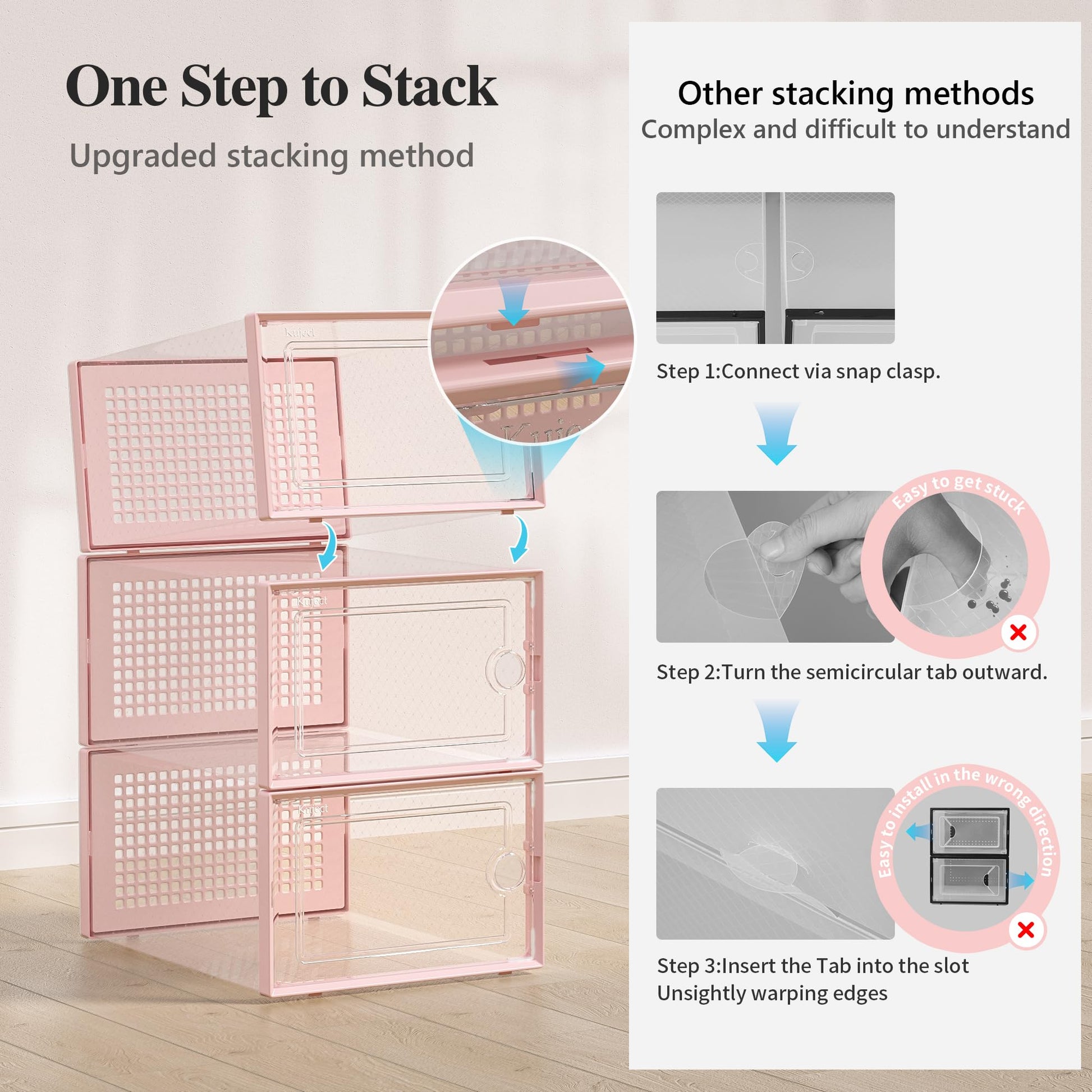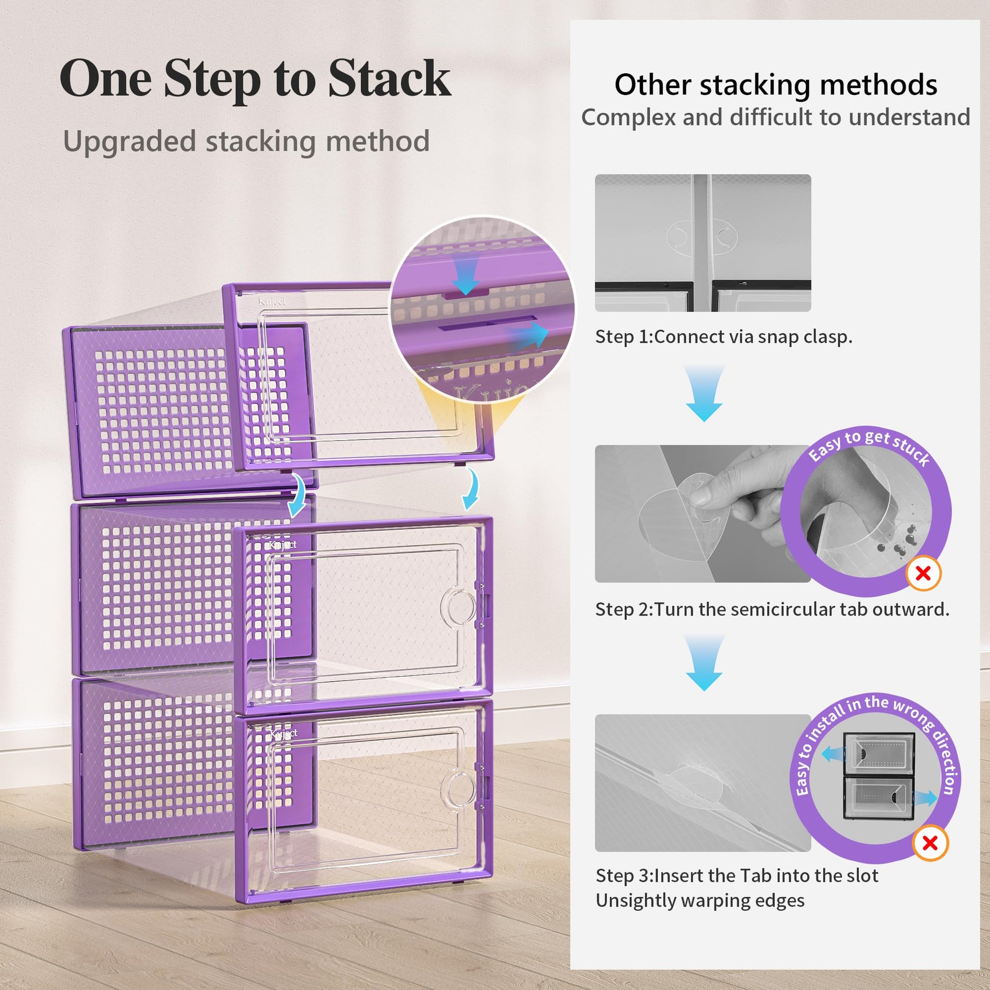 - Multi-Layer Stacking Design: Upgraded stacking design, just a few seconds can stack the shoe storage boxes