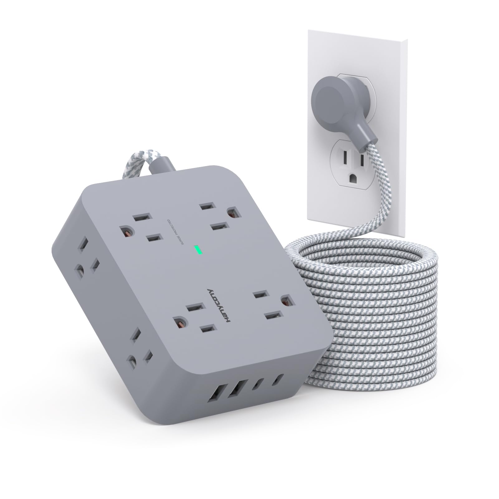 Surge Protector Power Strip - HANYCONY 8 Outlets 4 USB (2 USB C) Charging Ports, Multi Plug Outlet Extender, 5Ft Braided Extension Cord, Flat Plug Wall Mount Desk Charging Station for Home Office ETL