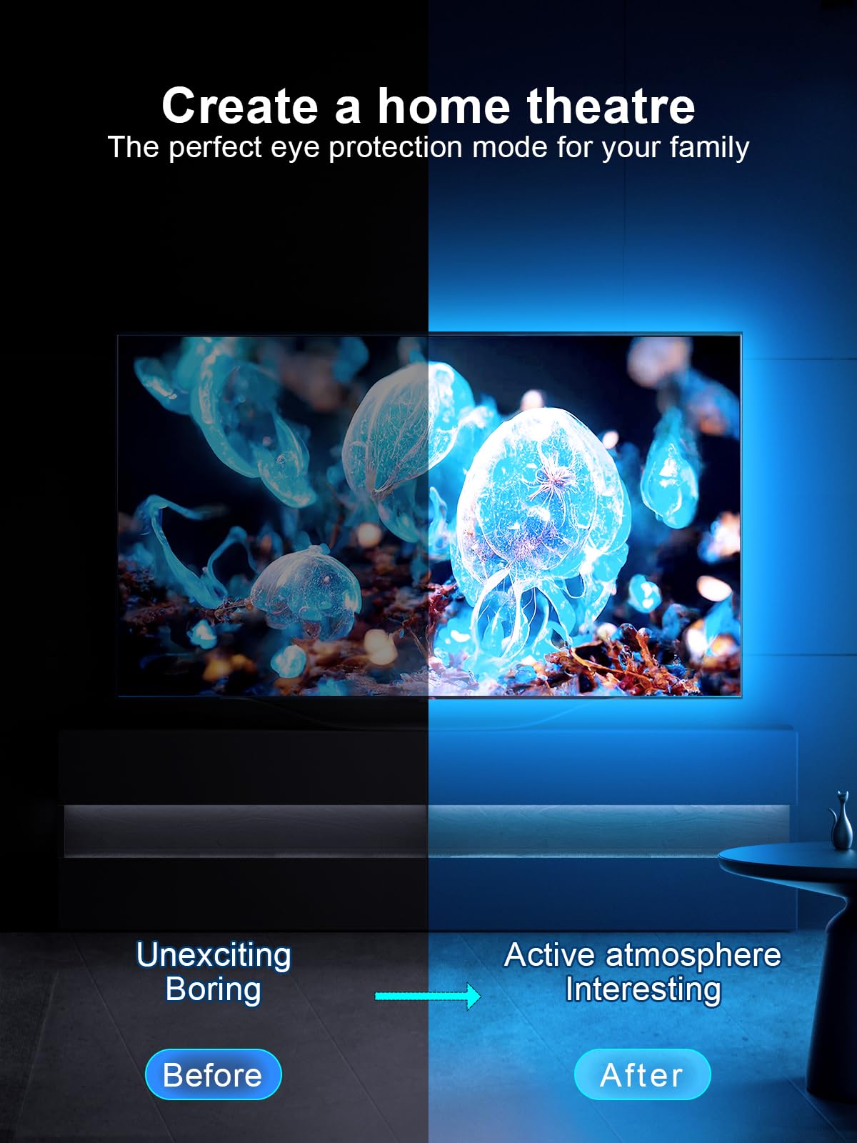- Multi-Application: The TV strip lights are suitable for living room, home theater, house, and various holiday decorations like Halloween and Christmas. The low heat 5V USB power supply makes the decoration safer.
