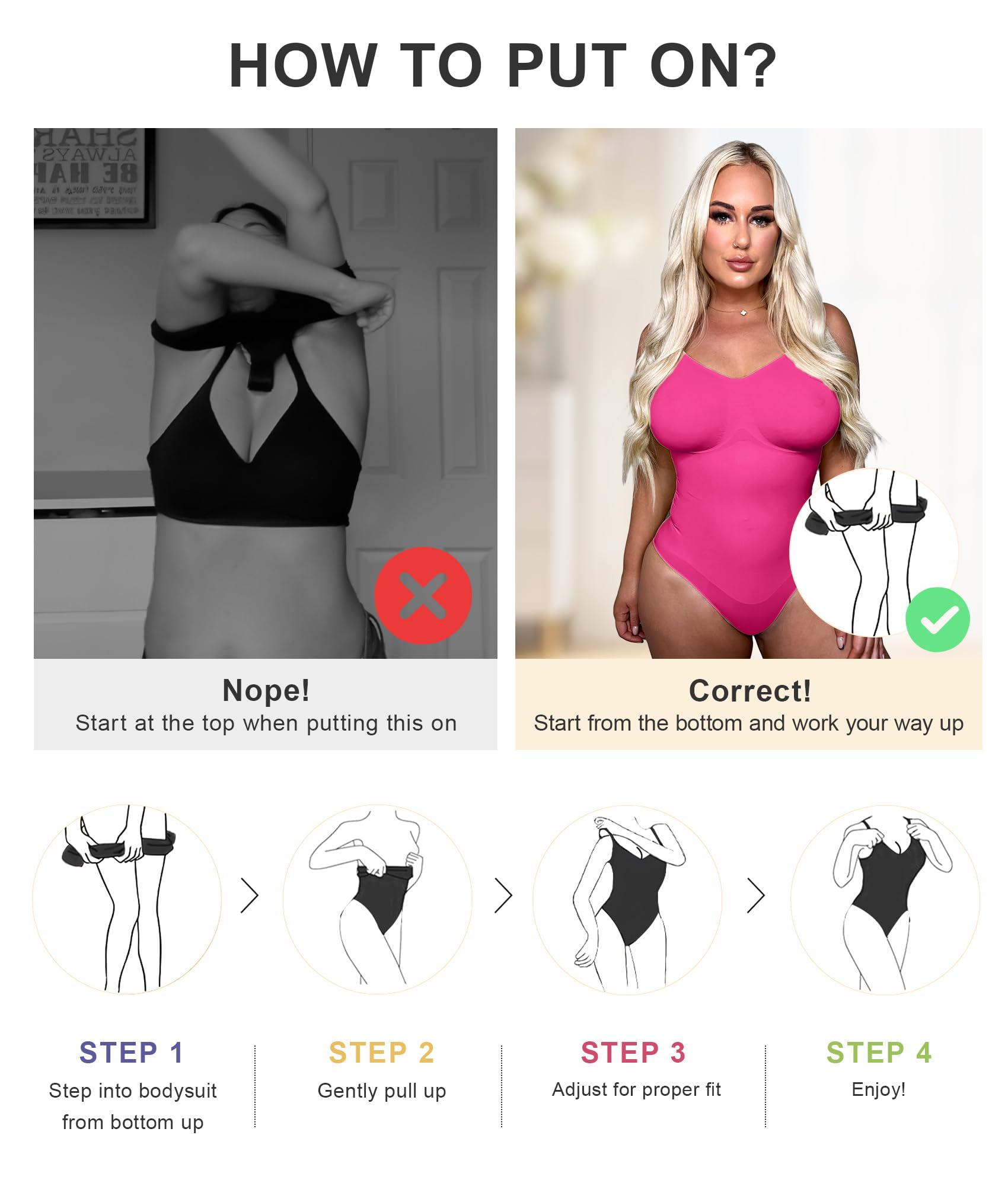 - Occasion: The body-shaping bodysuit is invisible beneath your daily clothes because of its seamless surface, light color, and length. You can wear it anywhere with any outer clothing, such as shorts, low-cut blouses, skirts, or knee-length dresses. It fits Office, Daily Wear, Sleep, Party, etc.