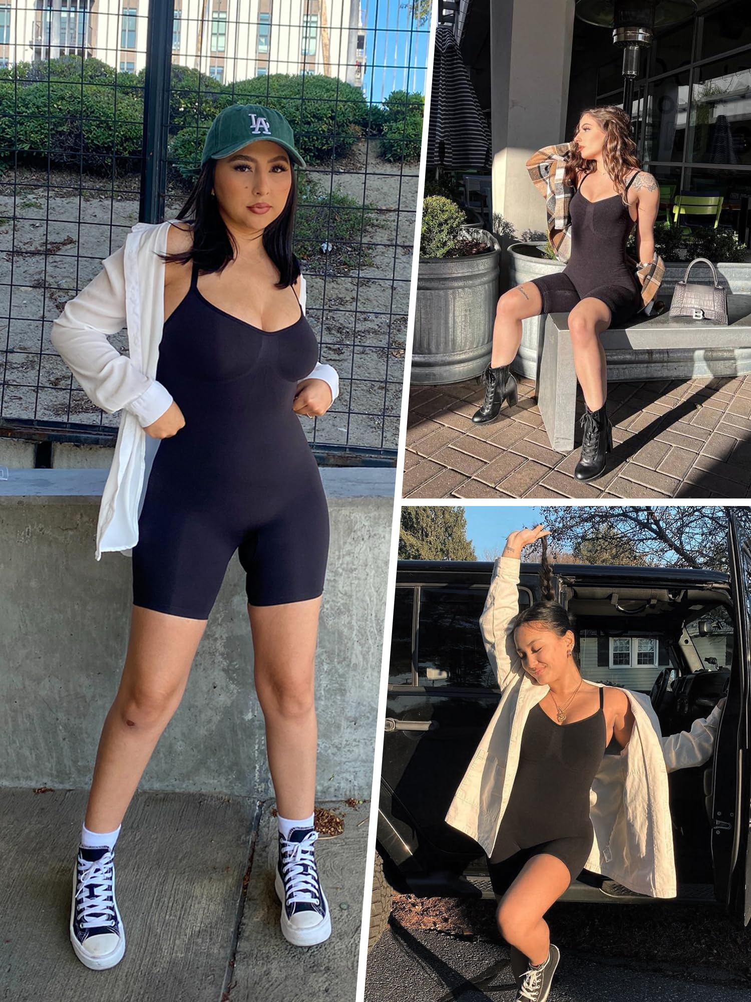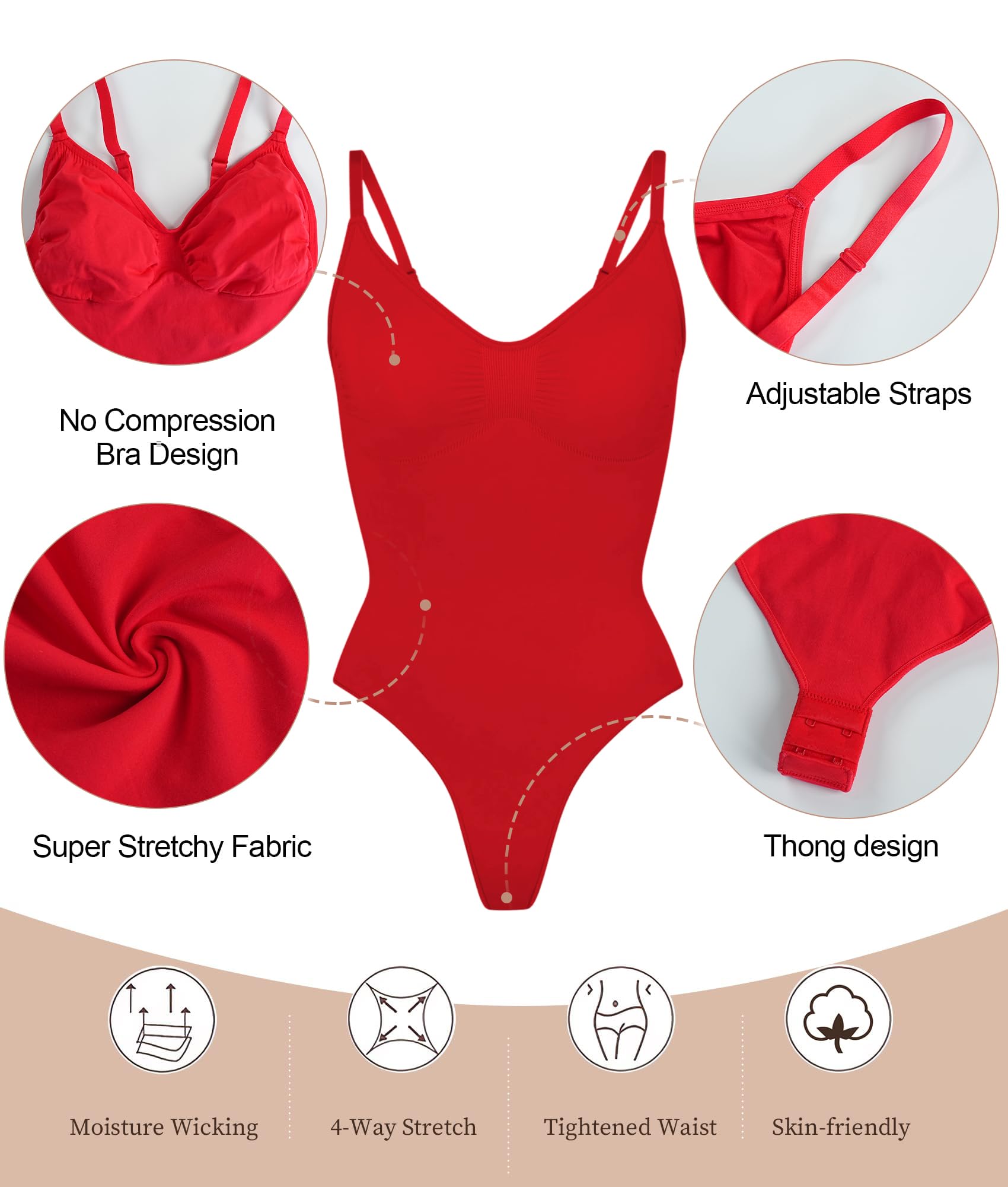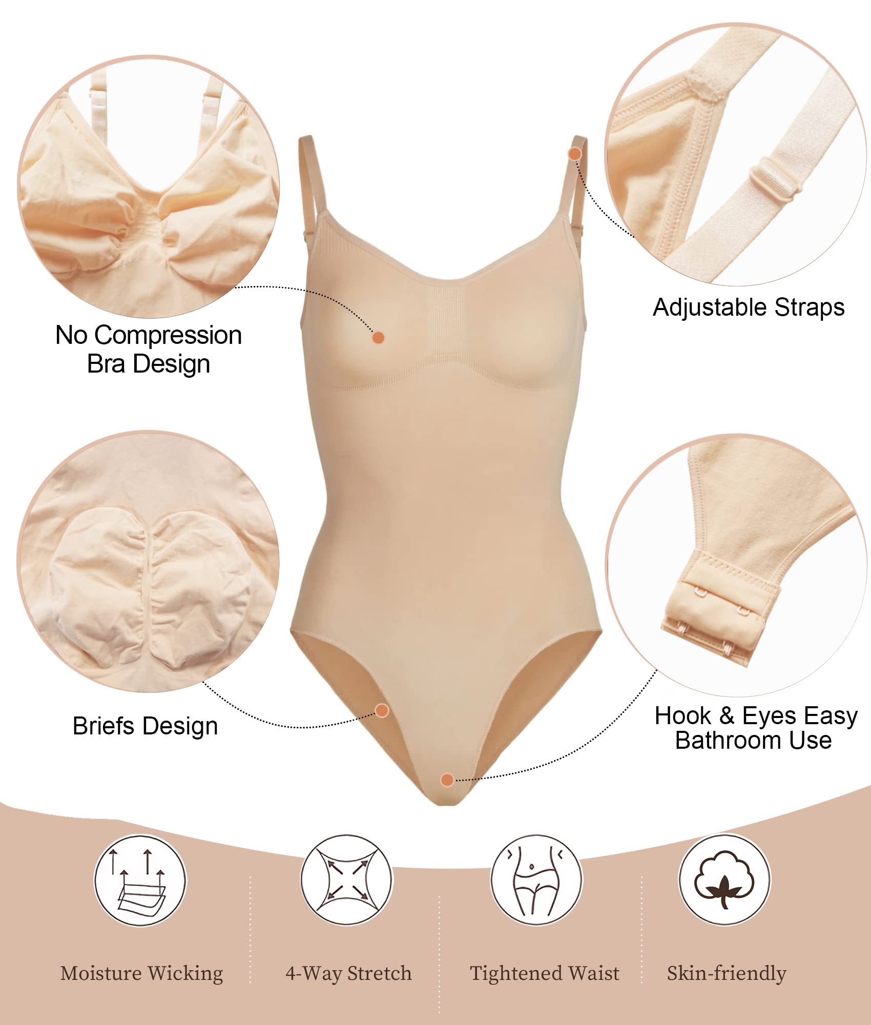 - No Compression Bra Design: Adjustable straps and no compression bra design fit for all cups. Open gusset easier to go to the bathroom; Butt Lifter & Thigh Compression Panties:This butt lifter panty shorts can help tighten your bottom and lift your buttock. The thigh commpression design ensure this mid-thigh slimmer will not roll down or up.