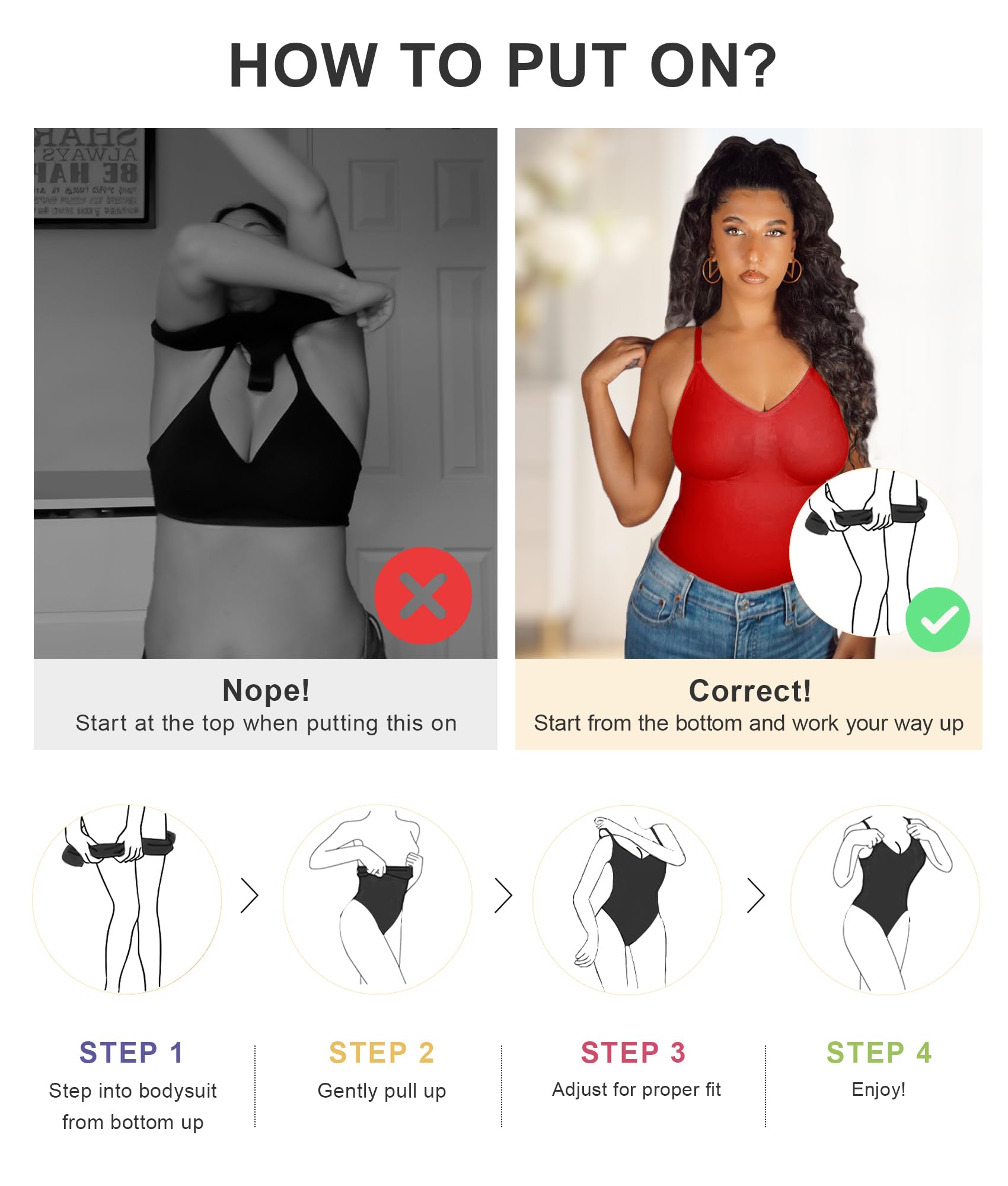 - 【Sizing Tips】Follow our size chart and measure your bust,waist and hip. You may be surprised how "tiny" the bodysuit looks during 1st time try-on. But don't worry, the bodysuit is purposely designed with super stretchy fabric so that it will hug you in all right places!
